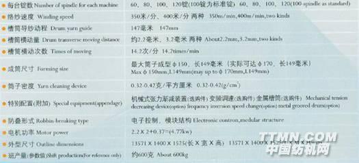 該機適用于工業(yè)縫紉線,輪胎簾子線,傳動帶粘合線,魚網(wǎng)用線,箱包線,背包用線,擴地毯紗,雪尼爾線等不同紗線的絡(luò)筒或繞成松軟的筒子供染色使用,也可以定制為反2-3根纖維并合卷繞成并紗筒子。