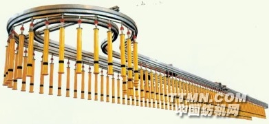為了解決粗紗在貯存和運(yùn)輸當(dāng)中發(fā)生的粗紗損傷問(wèn)題,以及紡織企業(yè)為了減少萬(wàn)錠用工人數(shù),實(shí)現(xiàn)無(wú)人化工廠,在自動(dòng)落紗的基礎(chǔ)上,實(shí)現(xiàn)了自動(dòng)運(yùn)輸粗紗,即實(shí)現(xiàn)了粗細(xì)聯(lián)。自動(dòng)運(yùn)輸粗紗從形式上分為兩種形式,一種是手拉式自動(dòng)運(yùn)輸粗紗,一種是電動(dòng)式自動(dòng)運(yùn)輸粗紗。手拉式自動(dòng)運(yùn)輸粗紗是粗紗機(jī)自動(dòng)落紗后,經(jīng)空滿管交換裝置將滿管紗轉(zhuǎn)移到輸送軌道上,然后將滿筒紗自動(dòng)運(yùn)到粗紗貯存庫(kù)處的軌道上,當(dāng)細(xì)紗機(jī)需要更換粗紗時(shí),由操作工從粗紗貯存庫(kù)處手拉滿筒粗紗(一般為120個(gè)),通過(guò)軌道及輸送鏈將其送到細(xì)紗機(jī)前,由細(xì)紗擋車工進(jìn)行空滿管更換。當(dāng)更換完畢后,將空管手拉到粗紗尾紗清潔裝置自動(dòng)清尾紗后,拉回到粗紗機(jī)前,為下一次自動(dòng)落紗后,空滿管交換用。電動(dòng)式自動(dòng)運(yùn)輸粗紗,是粗紗機(jī)自動(dòng)落紗后經(jīng)空滿管交換裝置,將滿筒紗轉(zhuǎn)移到輸送拖鏈上,輸送拖鏈?zhǔn)冀K處于不停的運(yùn)轉(zhuǎn)當(dāng)中,這樣將滿筒紗就會(huì)不斷運(yùn)到細(xì)紗機(jī)前,當(dāng)細(xì)紗機(jī)需要更換粗紗時(shí),由細(xì)紗擋車工從運(yùn)動(dòng)的軌道上取下滿筒紗,放到細(xì)紗機(jī)筒子架上,將筒子架上的粗紗空管放在運(yùn)動(dòng)的軌道上,從而實(shí)現(xiàn)粗細(xì)聯(lián)??筛鶕?jù)客戶的實(shí)際進(jìn)行設(shè)計(jì)配置。