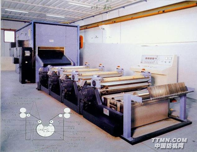 很多現(xiàn)代染色機(jī)制造商聲稱:現(xiàn)在已不必采用復(fù)洗工藝們的觀點(diǎn)是:在染色后,染色機(jī)內(nèi)的高效沖洗已足以除有殘留雜質(zhì)。但是在實(shí)際上,染缸的設(shè)計(jì)特點(diǎn)本身卻說(shuō)不能在染色循環(huán)終端除凈所有雜質(zhì)。裝載于染缸中的被毛,其作用類似于海綿,內(nèi)含染液,因此要用盡可能多洗才能將浮色洗去。這種漂洗超時(shí)占用染缸,且耗用了的水。此外,羊毛染后必須烘干。而在復(fù)洗后道烘干為有利。因?yàn)樵趶?fù)洗后,羊毛的含濕量較低,且在毛條勻分布,這樣就可采用最低溫度烘干。復(fù)洗中的洗滌作用必須均勻。CMT環(huán)球機(jī)械有限公司所產(chǎn)的復(fù)洗機(jī)采用抽吸滾筒式設(shè)計(jì),具有高效的洗液循環(huán)流量,迫使洗液穿透毛條,以確保將毛條中的浮色和殘留助劑洗掉。抽吸滾筒內(nèi)部裝有吸液泵,確保洗液穿透毛條層,復(fù)洗槽運(yùn)行速度系電子系統(tǒng)控制,使毛條以極低的張力通過(guò)復(fù)洗槽,這也進(jìn)一步有助于洗液穿透毛條。