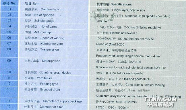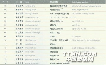 2、高紗速。創(chuàng)新設計的、超高配置的伺服成型系統(tǒng)、出紗速度高達100米/分,是傳統(tǒng)倍捻機的兩倍,特別適合于低支弱捻紗線的加工。