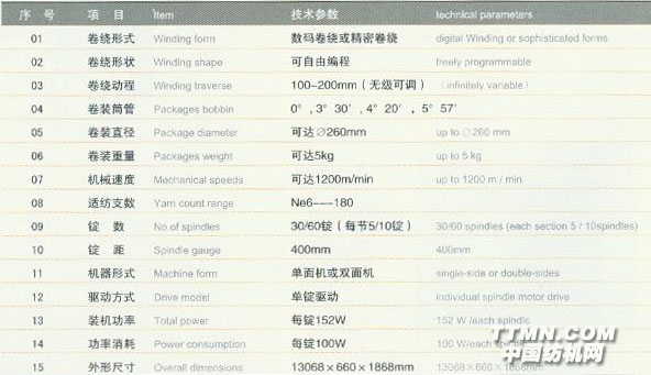 3、擁有專利技術的高速卷繞系統(tǒng),出紗速度高達150米/分。特別適合低支弱捻紗線的加工。