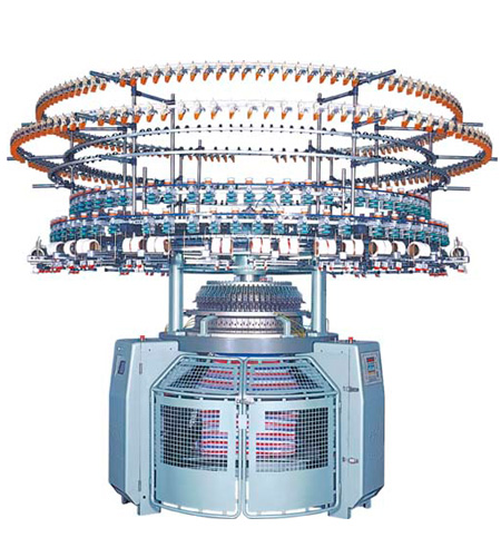 金天梭牌單面電腦自動(dòng)變色針織機(jī),采用立式調(diào)線頭,不易積花絮。