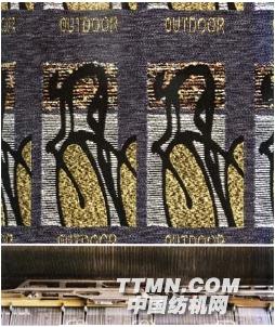 展示一臺(tái)MBJ5PR 115劍桿商標(biāo)機(jī),速度600r/min 。主要特點(diǎn)是應(yīng)用積極式引緯方式,使同一劍頭適應(yīng)12色不同粗細(xì)緯紗支數(shù)引緯。緯紗:滌絲 78dtex、黑絨線10Nm,黃、蘭、黑、綠不同顏色的滌絲78dtex,銀色盧勒克斯55Nm等12色不同粗細(xì)緯紗支數(shù),該機(jī)主要特點(diǎn):