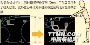 ③經(jīng)位置線高度降低 40mm,既降低了織機(jī)重心,提高了穩(wěn)定性,又便于擋車(chē)操作;