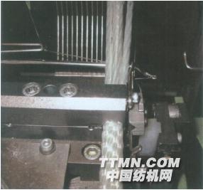 ③ VARITEX V5MJ 4/65 型提花織帶機(jī)條帶數(shù) 4 條,配 J192 型提花機(jī),384 針,適用織造彈性和非彈性經(jīng)提花條帶織物。展機(jī)配有加強(qiáng)收帶裝置,開(kāi)口機(jī)構(gòu)為花鏈片控制 2 片綜框。