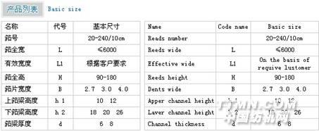 噴氣筘: 適用于各種型號(hào)和系列噴氣織機(jī)