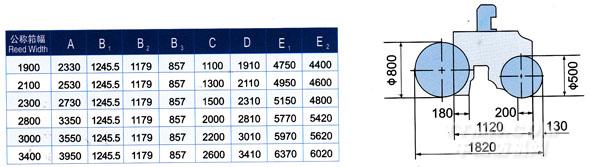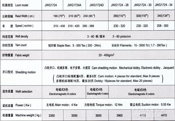 JWG1724系列劍桿織機(jī)主要規(guī)格尺寸