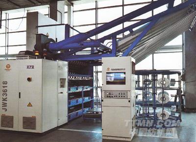 經(jīng)緯紡機股份有限公司榆次分公司最新推出與意大利RPR公司合作開發(fā)成功的全自動高速高效假捻變形機---JWK3618型假捻變形機。該機機械速度可達1500米/分,采用氣動生頭,自動落筒,導(dǎo)絲盤取代整體羅拉傳動結(jié)構(gòu),導(dǎo)熱絲盤代替第二熱箱,實現(xiàn)了自動化與高效率的完美結(jié)合。各項技術(shù)指標均達到國際領(lǐng)先水平。