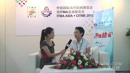 記者:觀眾朋友們,大家好!這里是2012ITMA 上海紡機展的展會現(xiàn)場。我是中國紡機網(wǎng)記者劉曉鈴,今天非常有幸采訪到江蘇海大印染機械有限公司的陳麗潔女士走進我們的演播廳,陳總您好。