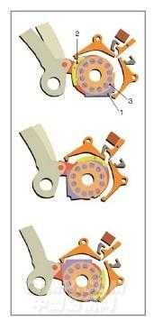 該裝置是 1款通用型積極式旋轉(zhuǎn)多臂裝置,適用于劍桿、噴氣或片梭織機(jī)。其工作原理如下圖所示。