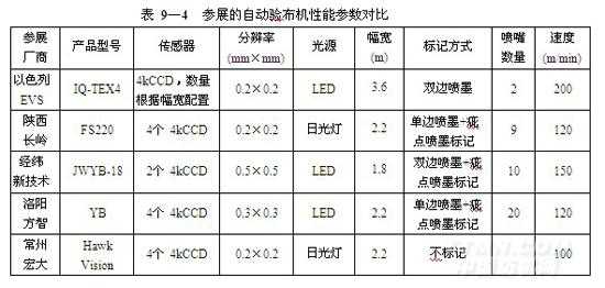 以下為參展的自動驗布機性能參數(shù)對比(表9-4)
