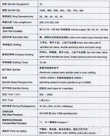 TH578系列緊密紡細紗機規(guī)格與參數(shù)