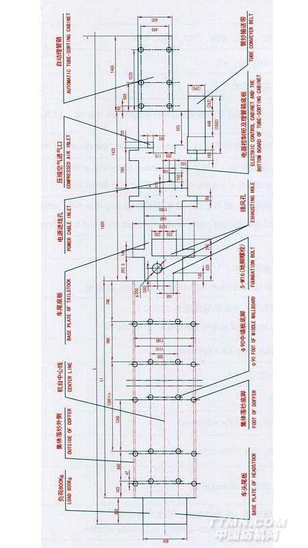 TH578系列緊密紡細紗機地腳平面圖