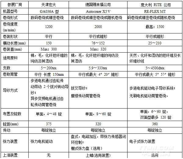 天津宏大紡織機械有限公司 GA036 型精密絡(luò)筒機、山東同濟(jì)機電有限公司的 TM08TA 精密數(shù)碼絡(luò)筒機、德國迪策舍爾機械制造公司大卷裝絡(luò)筒機提供了樣本。