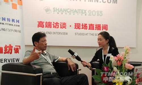 中國(guó)紡機(jī)網(wǎng)記者在現(xiàn)場(chǎng)直播間進(jìn)行高端訪談