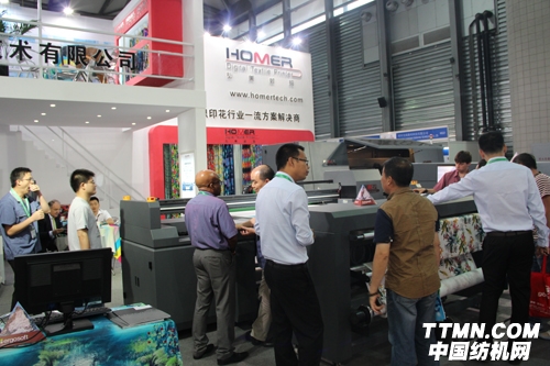 深圳弘美數(shù)碼紡織技術(shù)有限公司對(duì)此次展會(huì)予以高度重視,展示了公司的全系列產(chǎn)品,包括HM1800S工業(yè)級(jí)數(shù)碼印花機(jī)(產(chǎn)量可達(dá)90平米每小時(shí),3pass),HM1800工業(yè)級(jí)中速數(shù)碼印花機(jī)(產(chǎn)量可達(dá)180平米每小時(shí),3pass),并首次展出了弘美最新研發(fā)的HM1800L工業(yè)級(jí)高速數(shù)碼紡織印花機(jī),其配備16個(gè)高精工業(yè)噴頭,實(shí)際產(chǎn)量高達(dá)400平米每小時(shí)(3pass),并且在機(jī)械設(shè)計(jì),運(yùn)動(dòng)系統(tǒng)以及氣墨路系統(tǒng)等功能方面均有重大更新,使其能夠完全適應(yīng)大批量的連續(xù)生產(chǎn)需求。