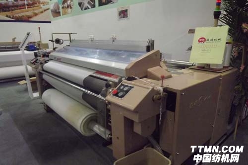 展會(huì)上,我們看到不少客商走進(jìn)海福展臺(tái)參觀咨詢。其中大部分客商對(duì)海福展示的HF-701型噴氣織機(jī)產(chǎn)生了濃厚興趣。據(jù)悉該產(chǎn)品是在普通噴水織機(jī)基礎(chǔ)上改進(jìn)研制而成,機(jī)器的主傳動(dòng)、機(jī)械送經(jīng)、機(jī)械卷取、開口部分以及箱體和機(jī)架部分均與噴水織機(jī)一致。只是嫁接了噴氣織機(jī)的打緯異形筘部分,集中供氣引緯部分,人機(jī)界面電控部分,該機(jī)型的研制成功大大降低了設(shè)備成本,用低價(jià)格的設(shè)備做一些簡(jiǎn)單的布種,可大大降低織造成本,可適用于棉織物、化纖和混紡織物。