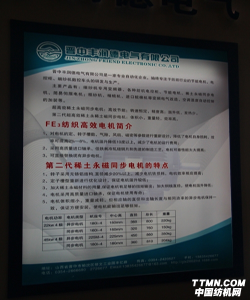 2014中國國際紡織機(jī)械展覽會(huì)暨ITMA亞洲展覽會(huì)上,晉中豐潤德電氣有限公司重磅推出了FE3紡織高效電機(jī)和第二代稀土永磁同步電機(jī)。