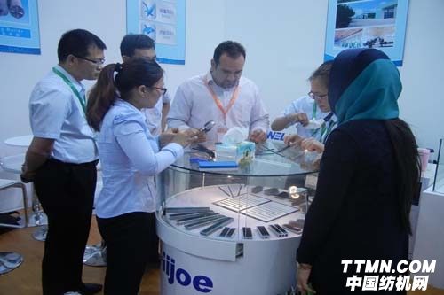 展會上,我們看到此次維爾展出的系列針布產(chǎn)品個個做工精良,特別是在燈光的映襯下更顯得熠熠生輝。工作人員告訴我們,該類針布均采用了先進的工藝和優(yōu)質(zhì)的選材,產(chǎn)品不僅質(zhì)量較以往有很大提升,而且使用壽命也大大延長?,F(xiàn)場不少外商在了解產(chǎn)品的詳細參數(shù)后,紛紛表示了購買意向。其中部分客商當場就與威爾簽訂了合作事宜。