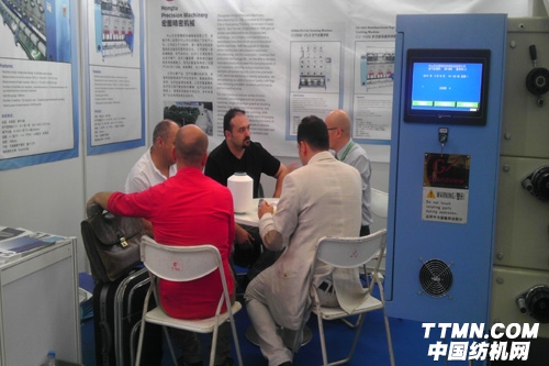 本次展覽會(huì)上,中山宏圖主要展出了GV800-V5.0單錠單控高速空氣包覆紗機(jī),展會(huì)期間吸引了眾多國(guó)內(nèi)外觀展商駐足參觀及咨詢。