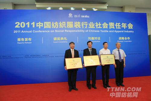 2011年6月27日—28日,由中國(guó)紡織工業(yè)協(xié)會(huì)主辦的2011中國(guó)紡織服裝行業(yè)社會(huì)責(zé)任年會(huì)在北京隆重舉行?!爱a(chǎn)業(yè)轉(zhuǎn)移背景下的社會(huì)責(zé)任:產(chǎn)業(yè)的梯度轉(zhuǎn)移和國(guó)內(nèi)市場(chǎng)的崛起對(duì)企業(yè)社會(huì)責(zé)任的影響“、”社會(huì)責(zé)任體系融合與中國(guó)企業(yè)社會(huì)責(zé)任的發(fā)展“專題論壇同期舉行。會(huì)議期間發(fā)布了”2010-2011中國(guó)紡織服裝行業(yè)社會(huì)責(zé)任報(bào)告“,經(jīng)緯紡機(jī)等16家紡織服裝企業(yè)同時(shí)發(fā)布社會(huì)責(zé)任年報(bào)。此次是經(jīng)緯紡機(jī)連續(xù)第三年發(fā)布社會(huì)責(zé)任報(bào)告,憑借詳盡的信息披露和連年高質(zhì)量的報(bào)告,經(jīng)緯紡機(jī)獲得了”2011年度中國(guó)紡織服裝行業(yè)社會(huì)責(zé)任信息披露實(shí)踐示范獎(jiǎng)“的殊榮。