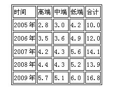 表1國(guó)內(nèi)市場(chǎng)不同檔次針布產(chǎn)品的銷(xiāo)售額(億元)