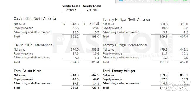 Tommy Hilfiger 業(yè)務(wù)收入增長(zhǎng)4%至8.916億美元,主要受?chē)?guó)際業(yè)務(wù)9%增長(zhǎng)推動(dòng),國(guó)際業(yè)務(wù)同店銷(xiāo)售錄得6%的增長(zhǎng),但北美市場(chǎng)銷(xiāo)售依舊疲弱,下跌2%,其中2000萬(wàn)美元損失因?yàn)榕cG-III Apparel Group, Ltd. 在美國(guó)、加拿大女裝授權(quán)業(yè)務(wù)方面的合作終止。