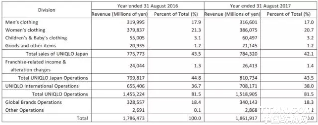圖為迅銷集團(tuán)2017財(cái)年詳細(xì)業(yè)績數(shù)據(jù)。