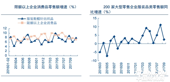 服飾零售表現(xiàn)強(qiáng)于整體板塊,并呈現(xiàn)加速趨勢(shì)。據(jù)了解到,2017年服飾零售呈復(fù)蘇趨勢(shì),1-10月限額以上服飾零售累計(jì)同增7.3%,且8-10月增速加快。百貨渠道也有明顯改善,從大型零售數(shù)據(jù)來看,自3月以來,前50/100/200家服飾零售增速多高于整體零售數(shù)據(jù),其中7、8、10月表現(xiàn)更加突出。