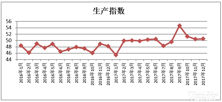 12月生產(chǎn)指數(shù)為50.55,較11月增加0.1。12月迎接圣誕和元旦雙節(jié),下游訂單穩(wěn)中有升。市場(chǎng)混紡及彈力品種增多,訂織訂紡品種數(shù)量漲勢(shì)明顯。據(jù)中棉行協(xié)調(diào)研了解,70%的棉紡企業(yè)設(shè)備開臺(tái)率在80%以上。據(jù)中棉行協(xié)跟蹤企業(yè)數(shù)據(jù)顯示,紗產(chǎn)量環(huán)比增加4.42%,其中,純棉紗環(huán)比增加1.98%,棉混紡紗環(huán)比增加9.93%,純化纖紗環(huán)比增加6.93%;布產(chǎn)量環(huán)比增加0.44%,其中,純棉布環(huán)比下降0.21%,棉混紡布環(huán)比增加4.52%,純化纖布環(huán)比下降5.90%。臨近春節(jié)放假,紡企多有提前放假打算,預(yù)計(jì)2018年1月產(chǎn)品生產(chǎn)指數(shù)將有所下降。