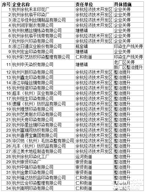 余杭區(qū)印染行業(yè)整治企業(yè)名單