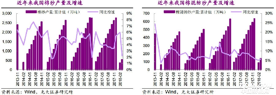 光大證券預(yù)計(jì),2018年服裝消費(fèi)回暖,拉動棉花需求,而國內(nèi)棉花種植面積和產(chǎn)量可能同比下降,2018年4月中國棉花協(xié)會調(diào)查結(jié)果預(yù)計(jì)2018年全國植棉面積為4217.5萬畝,同降4.43%。據(jù)《期貨日報(bào)》組織的新疆調(diào)研顯示,2018年新疆遭遇多次極端天氣,影響新棉生長,減產(chǎn)概率較高。棉花供需缺口持續(xù)存在,預(yù)計(jì)國儲棉庫存將進(jìn)一步消化降至較低水平,制約內(nèi)棉價(jià)格上漲的庫存壓力減小。國儲棉價(jià)格通常低于新棉,8月底輪出將結(jié)束、新棉逐步上市,此外,部分國儲棉尤其是地產(chǎn)棉質(zhì)量相對較差、難以滿足下游生產(chǎn)需求,且國儲棉需要保持一定的安全儲備量,補(bǔ)庫存預(yù)期逐漸加強(qiáng),棉紡企業(yè)對國儲棉需求有望提升,我們判斷年內(nèi)棉價(jià)上行概率加大。