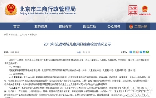 北京市工商局2018年一二季度組織開展北京市流通領(lǐng)域5類兒童用品的抽查檢驗(yàn)工作,涉及兒童服裝、兒童鞋、兒童玩具、學(xué)生用品、童車等。經(jīng)檢驗(yàn)機(jī)構(gòu)按照國(guó)家相關(guān)標(biāo)準(zhǔn)檢測(cè),發(fā)現(xiàn)不符合國(guó)家相關(guān)標(biāo)準(zhǔn)的不合格商品46組。其中,兒童服裝33組、兒童鞋10組、兒童玩具2組、童車1組。
