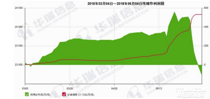 從我們模擬的棉紗利潤圖可以看出,3月份以來紡紗利潤逐步回升,棉花價格越低利潤越高,正是棉紗的需求旺盛帶動了棉花的需求,即使棉花在3-5月份之間還仍在不斷摸底階段。隨后棉花價格大漲,棉紗價格也隨著不斷上調(diào),但在最近一周中,棉紗價格滯漲,下游需求明顯減弱,加上棉花價格仍在快速上漲,棉紡廠的利潤首次出現(xiàn)虧損,反應(yīng)出下游承接能力不強,緊接著就是棉花價格出現(xiàn)大跌行情。如果以棉紡廠模擬利潤來預(yù)測棉花漲跌趨勢,那么棉價應(yīng)該在5月底就因該調(diào)整。