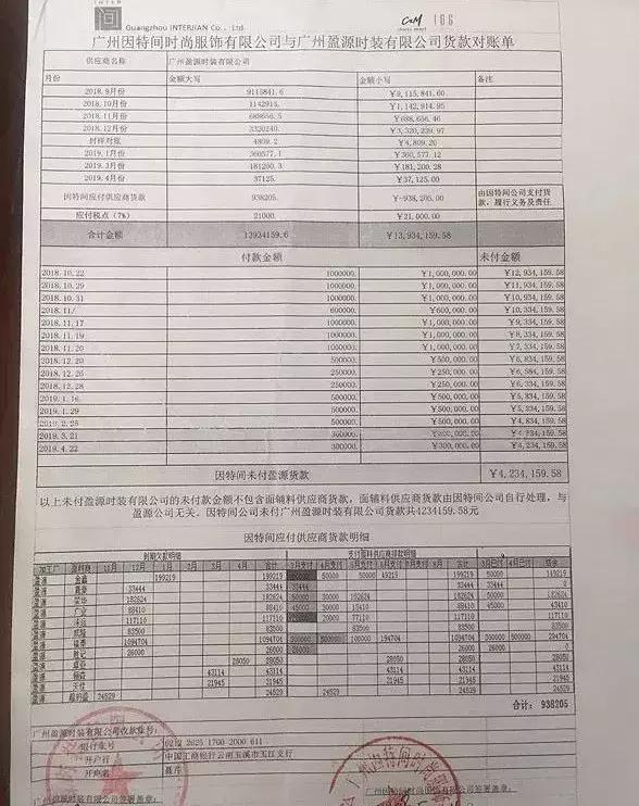 廣州市因特間時(shí)尚服飾有限公司于2018年至今與面輔料供應(yīng)商簽訂供銷(xiāo)合同時(shí),故意不蓋公因特間公司公章,只蓋一個(gè)涉嫌造假、沒(méi)有備案的“蘿卜章”,涉嫌私刻公章詐騙,簽收成衣加工廠大貨時(shí)也沒(méi)有蓋公章,利用與一些供應(yīng)商過(guò)往合作歷史以及部分供應(yīng)商法律意識(shí)淡薄,故意隱瞞欺騙供應(yīng)商,為后期逃跑推脫法律責(zé)任提前做準(zhǔn)備。眾多供應(yīng)商被廣州市因特間拖欠的貨款為幾十萬(wàn)到幾百萬(wàn)元不等。