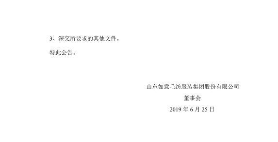 以下是山東如意毛紡服裝集團股份有限公司近日發(fā)布的公告內(nèi)容:
