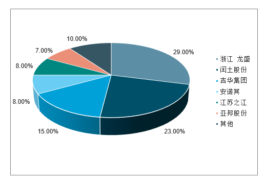較高的行業(yè)集中度帶來較強的議價能力,龍頭企業(yè)更容易達成默契共同推動染料價格上漲。同時規(guī)模效益,以及市場定價權的提升都將使得行業(yè)內(nèi)規(guī)模較大的企業(yè)獲得更高的經(jīng)濟效益,加速行業(yè)分化,進一步提升行業(yè)的集中度。從行業(yè)內(nèi)主要的上市企業(yè)來看。2018年,我國染料浙江龍盛年銷售收入達到了190.75億元,位居第一,,閏土股份、海翔藥業(yè)和安諾其銷售收入則分別為64.21億元、27.19元和11.60億元,四家企業(yè)銷售收入占據(jù)了整個行業(yè)的36%,預計未來這一格局將不斷持續(xù)。