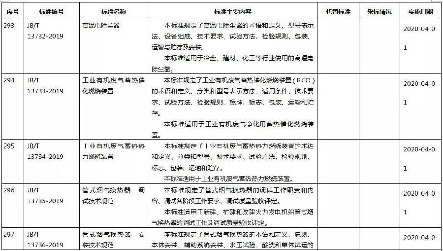 日前,工信部發(fā)布2019年第29號(hào)公告,批準(zhǔn)《銅鋅合金粉》等436項(xiàng)行業(yè)標(biāo)準(zhǔn),其中涉及高溫除塵器、煙氣換熱器、蓄熱式催化燃燒裝置等環(huán)保標(biāo)準(zhǔn)。