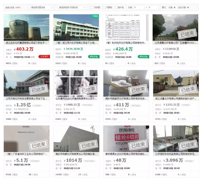 而今年以來,淘寶司法拍賣網(wǎng)上,關(guān)于化纖企業(yè)破產(chǎn)拍賣的案例又開始逐漸增多。