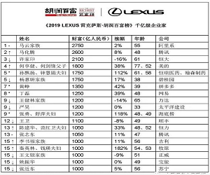 10月10日,胡潤(rùn)研究院發(fā)布了《2019胡潤(rùn)百富榜》,榜單顯示,1819位企業(yè)家財(cái)富超過(guò)20億,比去年1893人減少4%(74人)。其中,19人財(cái)富上千億,比去年驟增7人,為歷年最多。