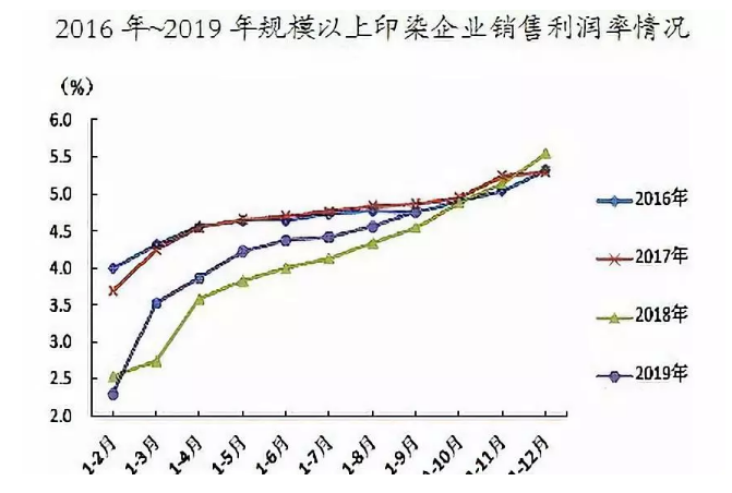 預(yù)計2019年四季度印染行業(yè)主營業(yè)務(wù)收入、利潤、出口等主要運行指標(biāo)保持平穩(wěn)增長,全年印染布產(chǎn)量有望實現(xiàn)增長。
