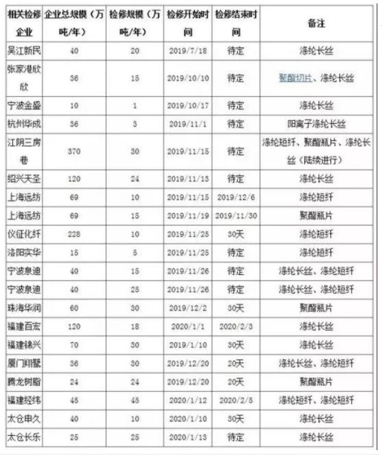 生產(chǎn)方面,今年過年聚酯工廠的檢修力度或許會非常大。上周開始,聚酯廠家檢修將逐漸增多,近期如儀征化纖、寧波泉迪等部分廠家滌綸長絲、滌綸短纖裝置已經(jīng)步入檢修階段。后期尤其是12月下旬至1月,聚酯裝置更有大面積的檢修計劃,如福建百宏、福建錦興、廈門翔鷺、太倉申久、太倉長樂等多套聚酯裝置春節(jié)停車檢修計劃也已經(jīng)出臺。