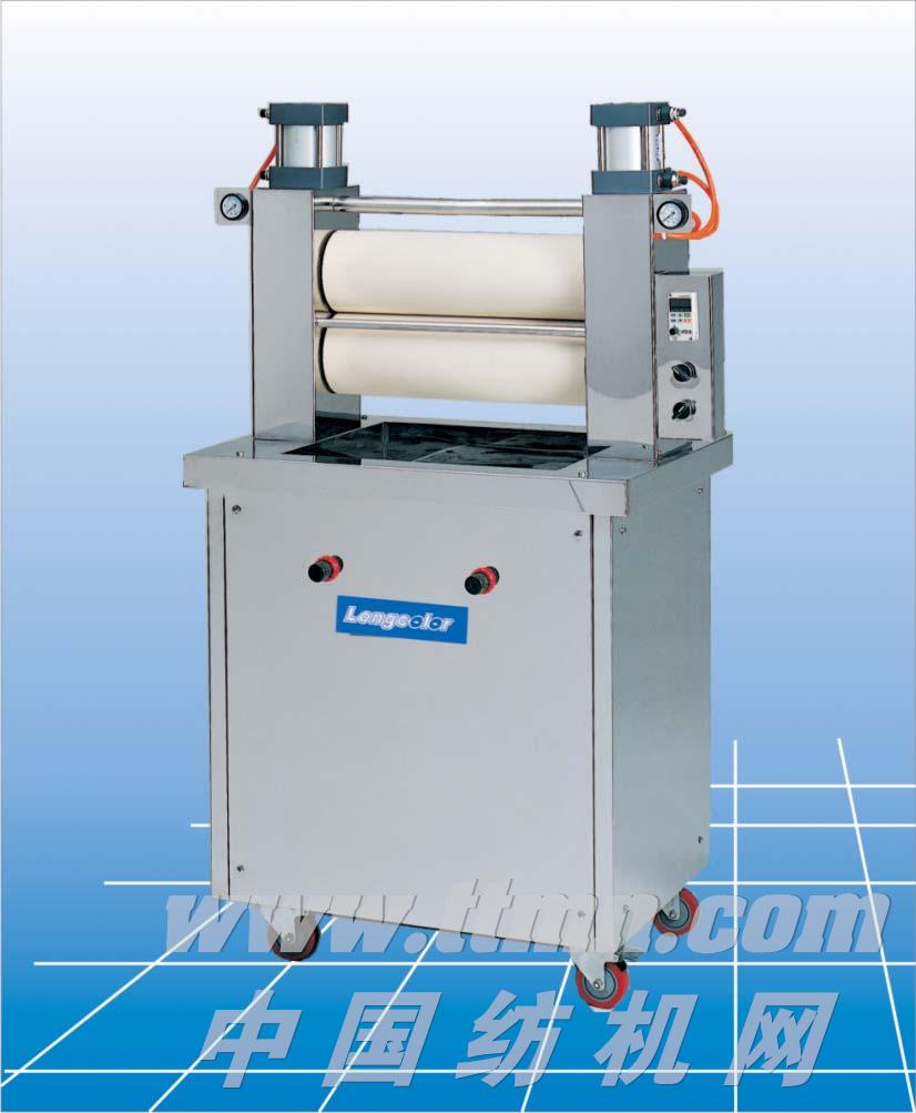 立式氣動小軋車專為長車,卷染生產行業(yè)染色試樣使用 ,適用于棉、T/C及其它紡織織物 ,氣動式加壓,可通過加壓閥自由調節(jié)壓力試驗 此軋車具有除骨架外均采用進品鏡面不銹鋼板。采用臺灣"AIRTAC"高性能的氣動元件,壓力穩(wěn)定,調節(jié)方便。臺灣名牌變頻器調速,適用織物范圍更寬。高精度的丁晴橡膠電動軋輥,硬度適中,軋液穩(wěn)定。穩(wěn)定的壓吸率,無左右偏差,重復性好。最大軋余率:35%;最大軋輥速度:10米/分。裝有腳踢安全開關 技術參數(shù): 1. 公稱幅寬:400mm 2. 公稱壓力:0.6Mpa 3. 丁腈橡膠軋輥硬度70° 4. 車速:變頻無級調速0~10米/ 5. 最大軋余率:35% 6. 單相交流電源:220V、50HZ 7. 外型尺寸: 710×600×1340mm(L*W*H) 8.重量:115KG