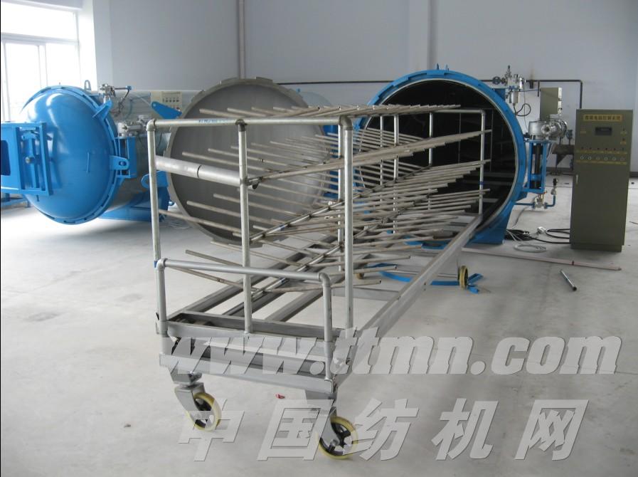 適用于以天然纖維、化學纖維為原料的紡織行業(yè)和單位,其主要用途是將具備織造條件的連續(xù)的絲線在合并、加捻后進行定型。即在一定壓力溫度下穩(wěn)定捻度,獲得均衡的不扭縮絲線,便于后道工序的加工和提高產(chǎn)品質(zhì)量。對于強捻度的紗線,采用“蒸箱”定型顯得更為重要。 該“蒸箱”的使用特點是:適用范圍廣泛,既能濕熱定型(將飽和蒸汽直接通入筒體內(nèi)),又能干熱定型(將飽和蒸汽通入夾套內(nèi),由筒體內(nèi)壁散熱)。大門開關(guān)輕便,物體裝卸迅速,密封性能好,熱定型效率高,使用安全可靠。定型后的產(chǎn)品諸如強力伸長度等物理機械性能不受影響,保證了產(chǎn)品的質(zhì)量。