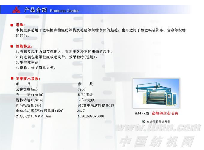 本機運用于法蘭絨、毛毯、呢絨、襯里棉布等織物表面起毛等工作。