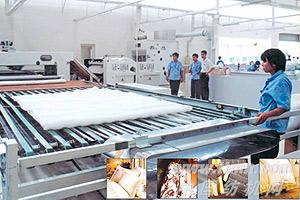 | 用途特點(diǎn):以聚丙烯為原料,經(jīng)熔融紡絲直接成網(wǎng),熱粘合加固成布。適用于醫(yī)用衛(wèi)生材料、家具裝飾、包裝材料等。<br>主要規(guī)格:產(chǎn)品凈寬:3200mm<br>產(chǎn)品規(guī)格:15-150g/m2<br>產(chǎn) 量:200-350kg/h<br>總 功 率:1100kw<br> <br>實(shí)用功率:650kw<br><br><br>YYBG Spun-bonded Nonwoven Fabric Production Line<br> <br><br>Purpose and characteristics: It directly makes polypropylene as raw material into mesh by melt spinning, then makes it into fabric by strengthening with hot-bonding. It is suitable for medical sanitary material, furniture decoration and packing materials etc.<br>Main specifications:<br>Product net width: 3200mm<br>Product specification: 15-150g/m2<br>Output volume: 200-350kg/h<br>Total power: 1100kw<br>Power actually used: 650kw |
