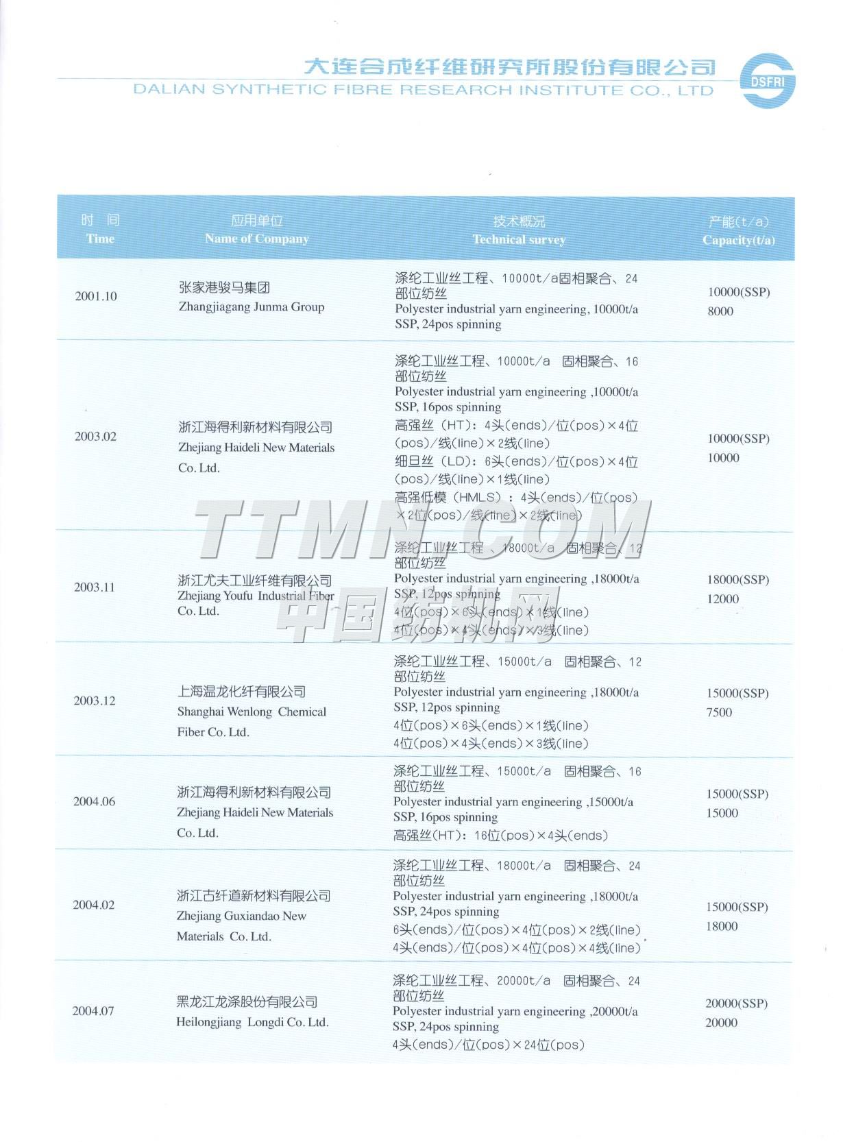 您所在的位置:紡機(jī)網(wǎng) > 紡織機(jī)械樣本庫(kù) > 大連合成纖維研究所股份有限公司