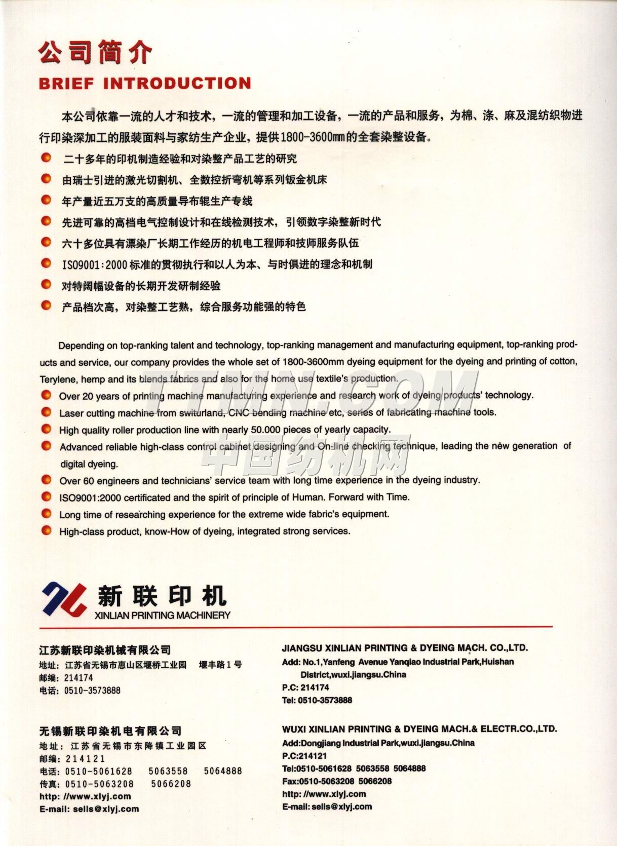 您所在的位置:紡機(jī)網(wǎng) > 紡織機(jī)械樣本庫 > 無錫新聯(lián)印染機(jī)電有限公司