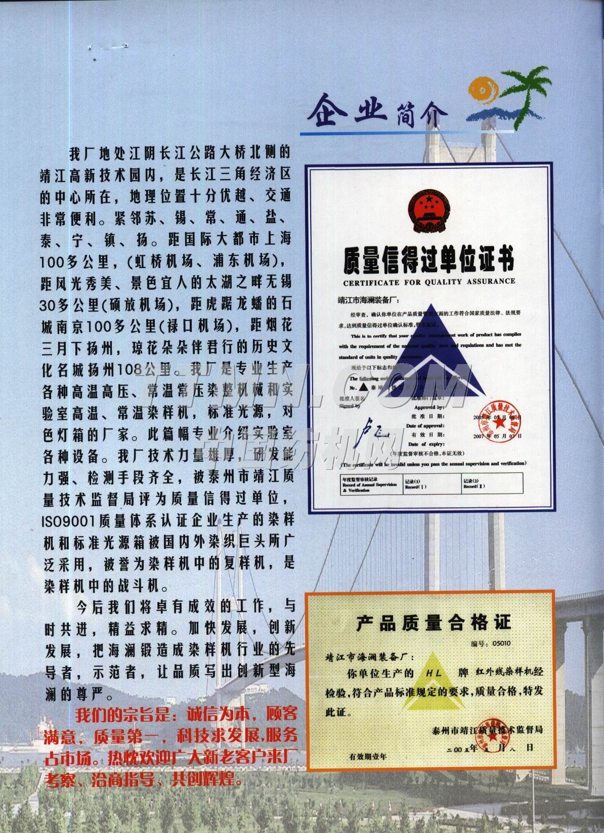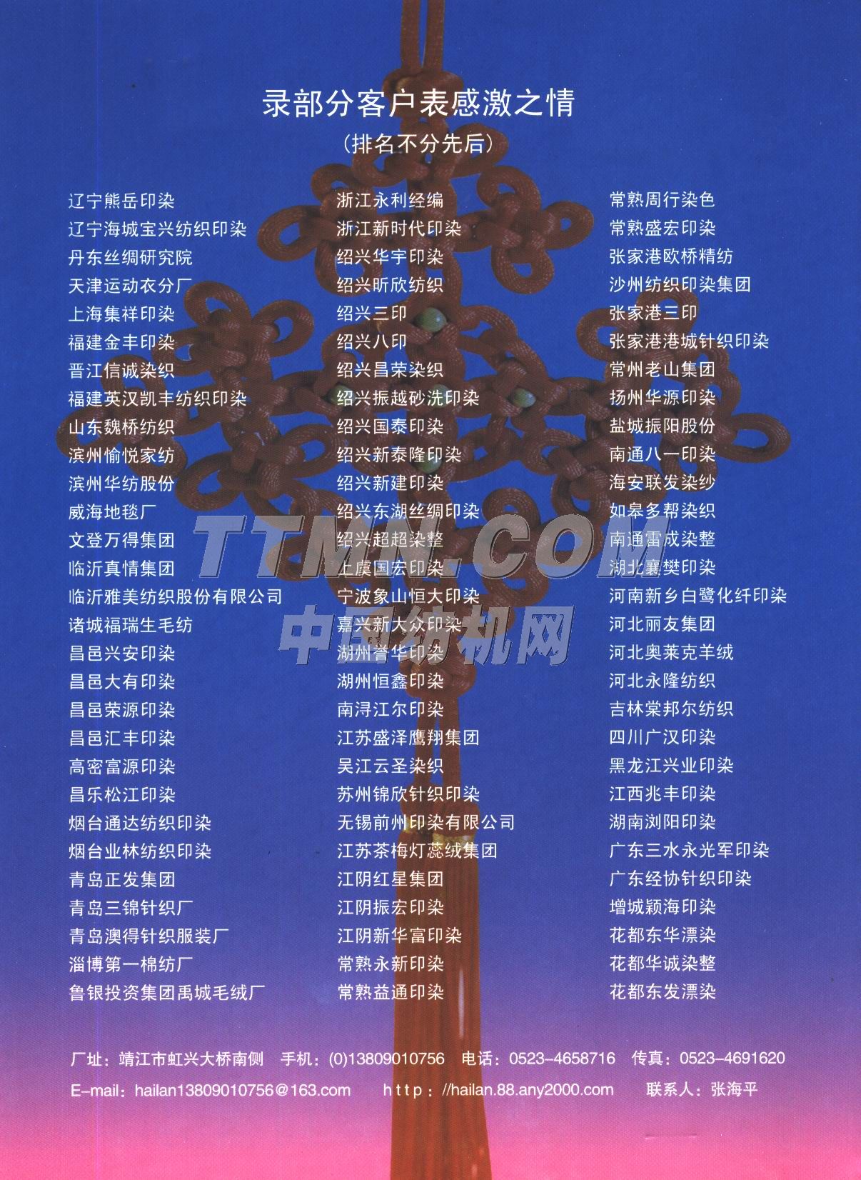 您所在的位置:紡機(jī)網(wǎng) > 紡織機(jī)械樣本庫(kù) > 江蘇省靖江市海瀾裝備廠