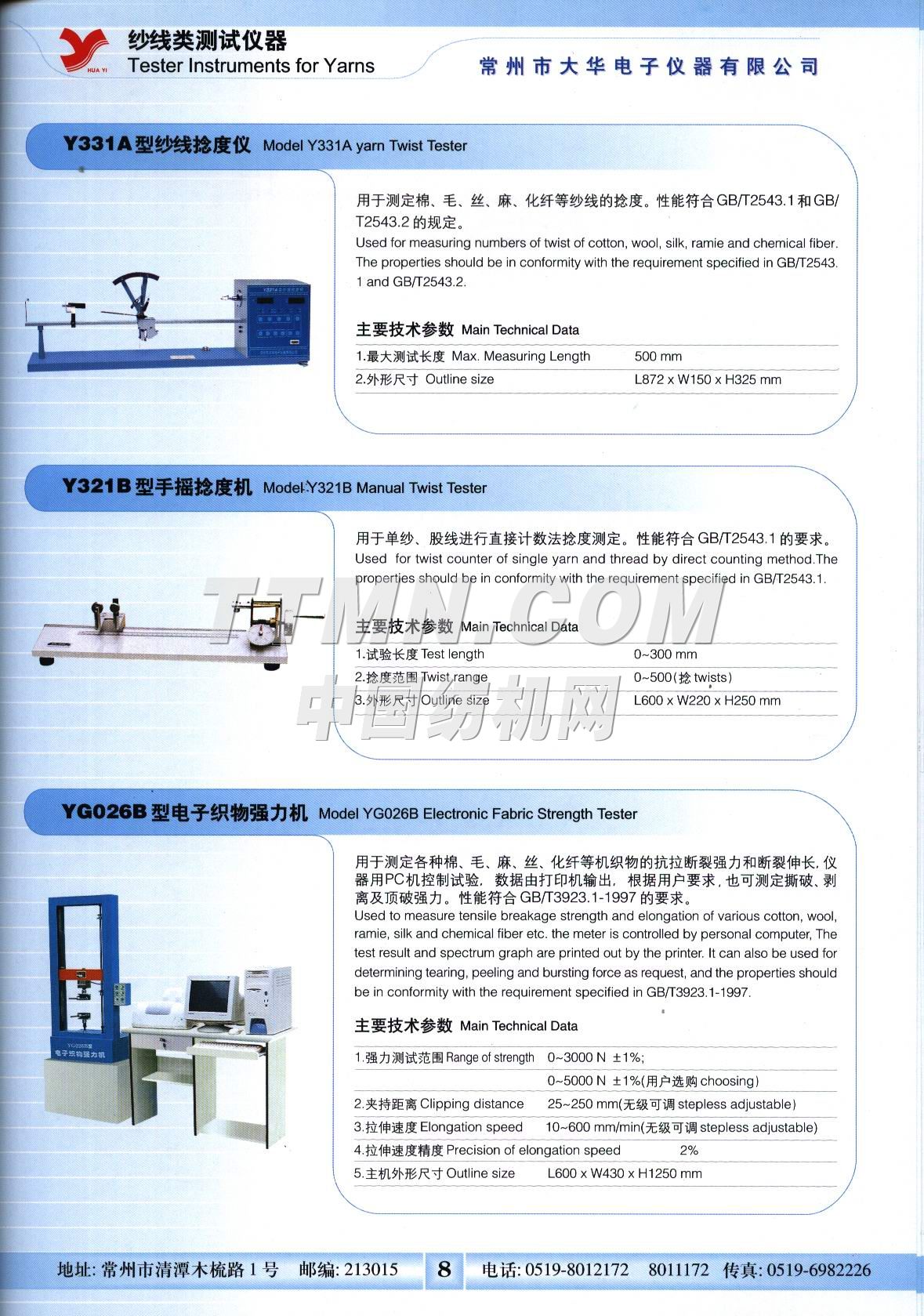 您所在的位置:紡機網(wǎng) > 紡織機械樣本庫 > 常州市大華電子儀器有限公司